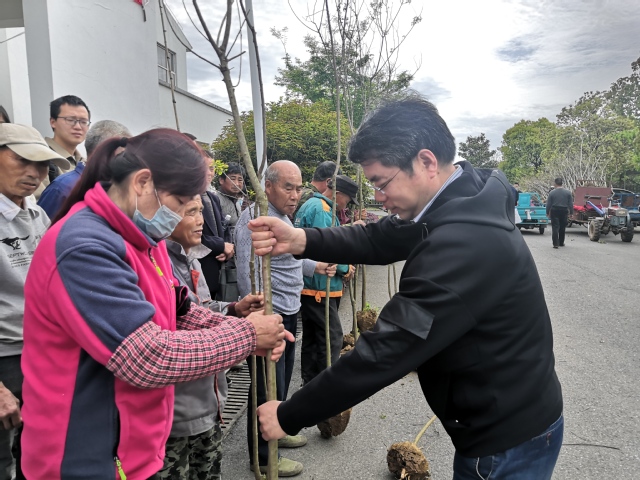 首先开始的是赠苗活动,今年是连续开展赠苗活动的第四个年头,村党总支书记曹安静对园林公司多年来坚持不懈的帮扶工作表示肯定和赞扬。支部书记赵康兵鼓励农户多种苗、种好苗,指出苗木销售前景良好,能为农户带来实惠,园林公司将发挥专业特长,保持这一优良传统,坚持为群众办实事,为浮山村乡村振兴做出国有企业应有的贡献,让村民过上更加美好的生活。活动现场向农户赠送了300多株高质量乌桕小苗,农户看到挺拔的乌桕小苗,脸上洋溢着对未来美好生活的期盼。