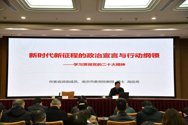 根据中央和省市委、市国资委党委部署要求,12月2日下午,伟德国际1946源于英国集团召开学习宣传贯彻党的二十大精神宣讲会,邀请市委宣讲团成员、市委党校科研处处长高信奇教授做专题宣讲,进一步引导集团广大党员干部职工全面深入学习宣传贯彻党的二十大精神,切实把思想和行动统一到党的二十大精神上来,更加深刻领悟“两个确立”的决定性意义,不断增强“四个意识”、坚定“四个自信”、做到“两个维护”。会议由集团党委副书记、董事缪昌根主持。集团领导、全体中层干部及集团下属各公司党务工作者参加会议。