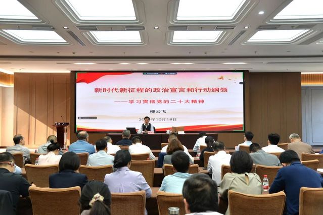 会上,柳云飞教授以《新时代新征程的政治宣言与行动纲领——学习贯彻党的二十大精神》为题,主要从“党的二十大的主题和主要成果”“党的二十大提出的新思想新战略新部署”“党的二十大的重大意义”“深入学习贯彻党的二十大精神,推动高质量发展”等四个方面,深入阐述了党的二十大精神的深刻内涵。本次宣讲内容丰富、深入浅出,对于集团全体党员干部职工进一步全面理解、准确把握和深入贯彻党的二十大精神具有很强的指导意义。