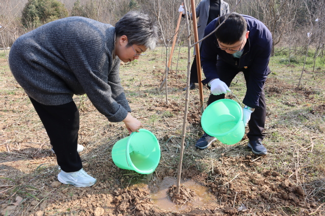 草长莺飞,春意盎然。活动现场,参加活动人员两人一组,拿起铁锹,分工协作。挖土、放苗、填土、压实……齐心协力,弘扬人人爱绿植绿护绿的文明精神。