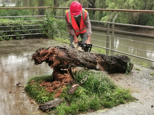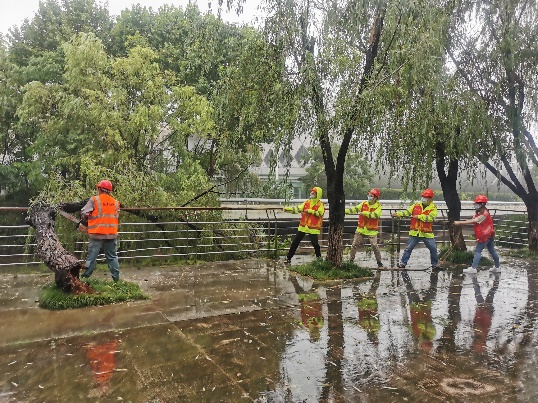 阵风10级以上、平均风力8级,接连数天雨水不断,7月27日,“烟花”中心过境我市,为进一步将“我为群众办实事”实践活动落到实处,进一步体现党员的先锋带头作用,公司迅速组建党员先锋队,协助绿化养护人员巡查检查、清理断枝、抢险倒伏树木。