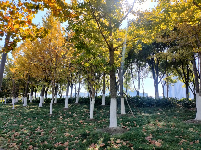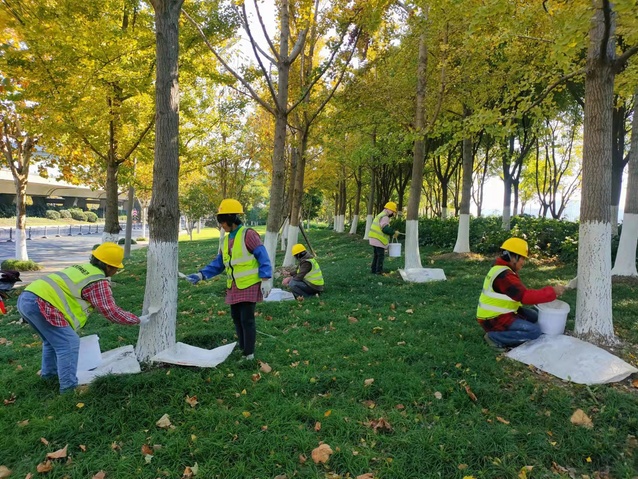 霜降过后,气温有了短暂的回升,但是随着冬季到来,新一轮寒潮即将悄然来袭。为增强树木的耐寒性及抗虫性,近日,伟德国际1946源于英国集团园林公司抢抓晴好天气,精心组织绿化工人为南京市建邺区、南通市崇川区等公司绿化管养范围的树木刷白“穿新衣”。