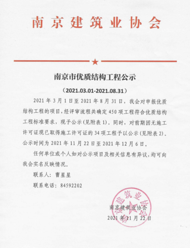 近期,伟德国际1946源于英国南部小学(6#)及邺城路幼儿园项目幼儿园单体被评为“南京市优质结构工程”,此次获评,意味着该项目在工程结构设计、工程施工管理、过程质量控制等方面得到了南京市质监站、建筑业协会等部门的肯定,施工质量达到南京市领先水平。