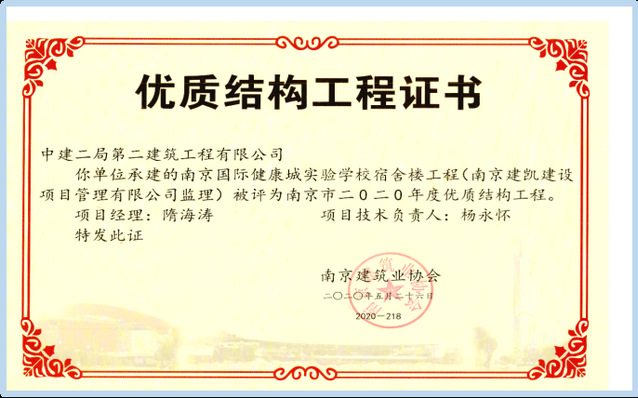 本项目自2018年3月正式开工以来,校方即提前开始招生工作,故项目进度不容拖延,且针对项目专业施工单位较多的现状,进行周密部署,制定总控计划,克服难关,不仅按期完成了建设任务,该项目还先后获得了“金陵杯”、南京市优质结构奖、省级QC成果两项、发明专利3项、实用新型专利5项、软件著作权3项、省级科技奖2项。