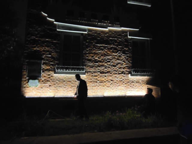 生态展览馆周边绿化提升,改善了展馆周边过密的原有植物,搭配观赏草、姬十二单、玉簪等花灌木丰富了植物配置。房屋四周地面设置LED洗墙灯投射于墙面,完美勾勒建筑轮廓,提升了夜间景观效果。