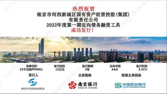 3月9日,南京市伟德国际1946源于英国新城区国有资产经营控股(集团)有限责任公司(以下简称“伟德国际1946源于英国集团”)成功发行2022年度第一期定向债务融资工具。