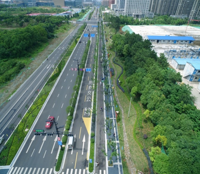 其中,海绵城市工程是此工程的项目亮点,海绵城市通过植草过滤渠收集到的雨水资源有效的利用,储存和渗透引流,减轻场地及周边地区的内涝及雨洪问题,建设生态绿色轴线,打通生态廊道,建设生态节点,实现径流的有效控制。这一城市建设理念,充分显示了人与自然的和谐发展。