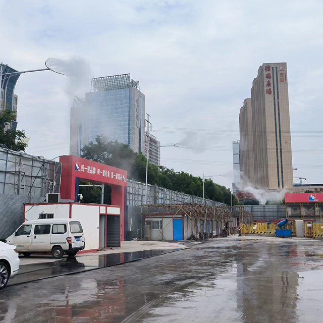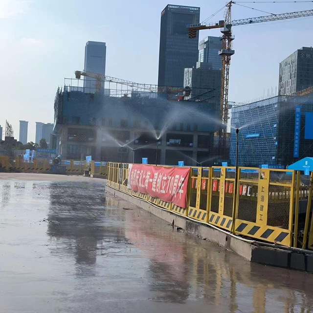 该项目A、B、C区目前处于底板施工阶段,针对扬尘管控,新城公司项目管理团队严格按照“十达标”管理标准进行施工,在出入口规范设置冲洗平台,并配合高压水枪等设备对进出车辆进行全方位冲洗,杜绝了车辆带泥上路。施工现场配备雾炮机、高杆喷淋进行360°旋转降尘。同时,项目安排专人对施工道路进行清扫,洒水车不间断洒水使道路保持湿润,进一步提升工地抑尘效果。