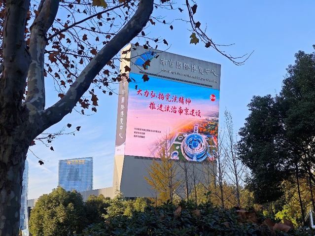 宪法是国家的根本大法,是治国安邦的总章程。今年12月4日是第十个国家宪法日,12月4日所在的周是第六个“宪法宣传周”。为深入学习宣传贯彻习近平法治思想,着力营造学习宣传宪法的浓厚氛围,弘扬宪法精神,维护宪法权威,集团充分借力户外大屏媒介载体进行普法宣传,会展、公园、酒店等板块根据集团部署联运同步点亮“大力弘扬宪法精神、推进法治南京建设”宣传标语,利用各类公共场所电子显示屏滚动播放,使宪法宣传走进千家万户。